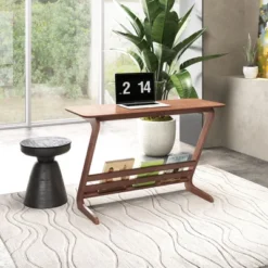 The Lakeview Desk has wood veneer and MDF top with solid rubberwood legs. This desk is the perfect Mid Century Modern piece for any workspace.