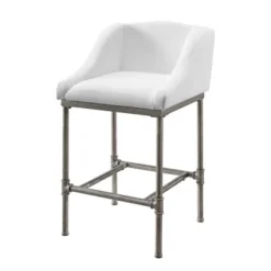 Looking to spruce up your current counter or table and make it the spot where everyone wants to gather? Your search is over. This Metal Bar Stool is the answer to all of your design woes. Constructed in a matte black metal, the tapered legs of the frame support a 360-degree swivel seat wrapped in a textured steel gray upholstery that is both durable and easy to maintain. And with the curved metal back with scooped ladder-style slats, the backrest provides a comfortable embrace while you kick back and relax. Plus, with its modern transitional style, this bar stool easily adapts to many types of décor and spaces. Assembly required.
