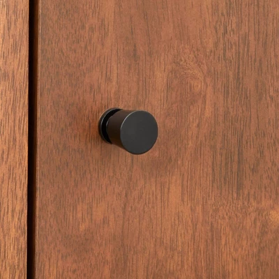 Organize your TV and media components with the Lawrence Mid-Century Modern Entertainment Center by Lifestorey. This stand accommodates TV’s up to 80 inches while providing a center opening for a cable box or other media components, making it easily accessible by rear grommet holes for cord management. A lower drawer and two (2) side cabinets with an adjustable shelf behind each provide even more room for your movies, music, gaming accessories, and more. Constructed of solid Rubberwood legs and veneered MDF in a Nordic Dark Walnut finish, featuring Antique Black knobs.