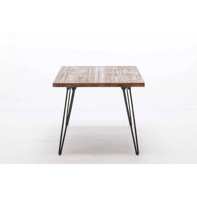 - Iron frame and hairpin legs hold up the fir tabletop