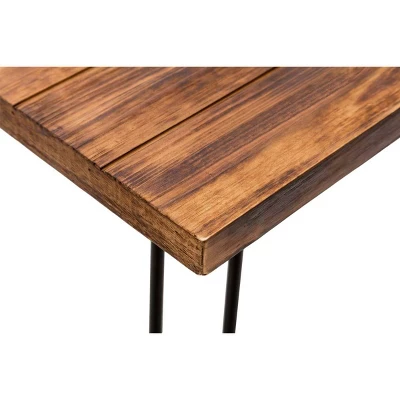 Add a rustic twist to your decor with the Leonardo Weathered Fir and Black End Table from Boraam. This end table will enhance your space without taking away from the rest of your decor. Weathered fir makes up the tabletop in simple block fashion, while iron hairpin legs hold it up, revealing ample space beneath for storing blankets and other miscellaneous items.