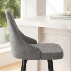 Modern style and luxury comfort are personified in this set of two dining stools. Featuring a rounded, contoured seat thickly padded with high density foam for ultimate comfort. Soft and durable upholstery protects from accidental stains and spills and wipes clean with a dry cloth. The durable steel frame features beautiful chrome accents and supports 225 lbs. of static weight. Each stool assembles in 30 minutes or less and offer adjustable glides to protect your flooring.