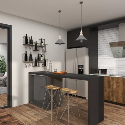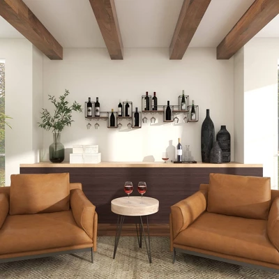 - •The irregular shape creates tiers of wine shelves and glass holders