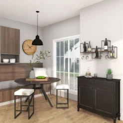 - •The polished finish on both the black metal frames and brown wooden platforms produces a clean-cut exterior