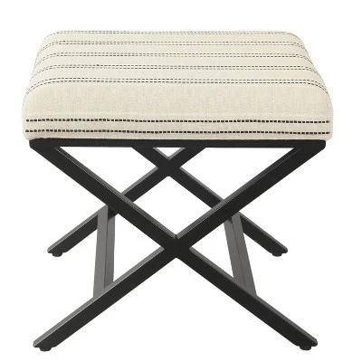 This modern industrial ottoman will update any space. Its upholstered cushion tops a finished metal base. Use it to complement an accent chair in a living room, to provide extra seating in a family room or pair two together at the end of a bed. This square ottoman works well in a smaller space and will blend with a variety of styles. Easy to assemble and maintain with spot cleaning as needed. This ottoman can support up to 250 pounds.