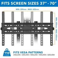 - Compatibility: VESA patterns 200 mm x 200 mm to 600 mm x 400 mm and screens from 37″ – 70″
