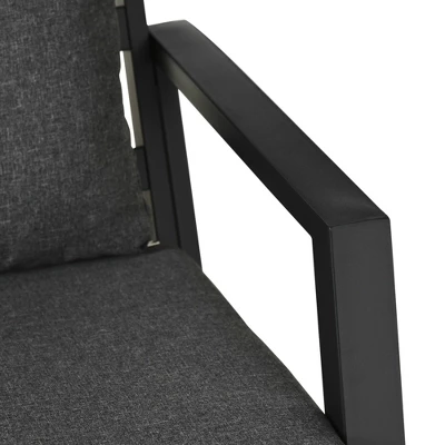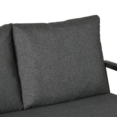 Serve dinner and bring the comforts of the living room to your backyard with Outsunny. This four-piece outside table and chairs set brings everything together. Featuring a loveseat sofa, two chairs, and a center table for friends to drink, have dinner, and decorate. Each seat has thickly padded cushions and ample armrests. Have the rustic look of wood outside. Made of strong steel for heavy-duty resistance to bending and a high weight capacity, this was built with outdoor in mind.