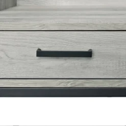 The Picket House Furnishings Peyton Desk provides plenty of functionality and style. With one spacious drawer and two open storage compartments, the Peyton provides ample storage for storing your favorite books. Constructed of sturdy wood and metal with a V-shaped back design. Black metal secure drawer pull adds textural element to this industrial desk. Includes one power outlet for keeping all of your devices charged. Features woodgrain detailing for a rustic finish. The vintage, industrial design is perfect for your home office or living room.