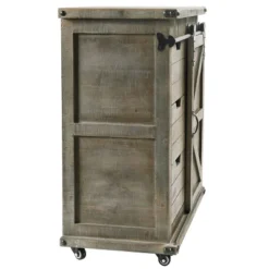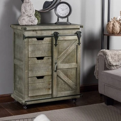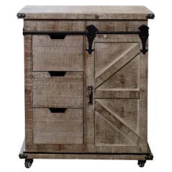 The Presley side cabinet is the perfect piece to add a rustic look to your space while providing a stylish storage area. The cabinet from StyleCraft Home Collection has a driftwood gray finish and black metal hardware and corner detailing. One side features a rolling barn-style door with raised wood accents while the other side has 3-drawers for keeping things organized and out of sight. This will pair well with farmhouse styling and is sure to be a conversation piece.