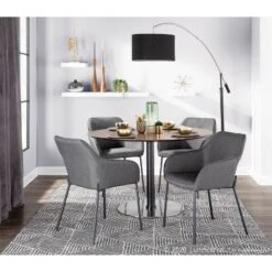 Fall in love with the contemporary style and comfort of the Daniella Dining Chair. The bucket style seat is upholstered in beautiful woven fabric and features stylish metal legs. The comfy seat is perfect for long conversations, or a quick morning breakfast. Available in a variety of upholstery colors, this sleek chair is the perfect addition to any dining or living area.