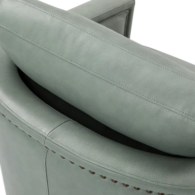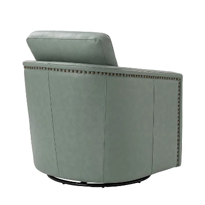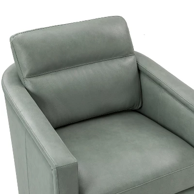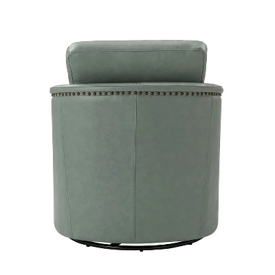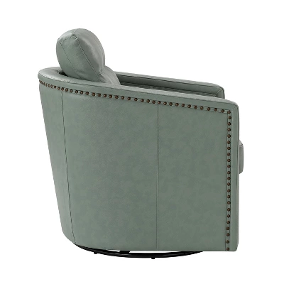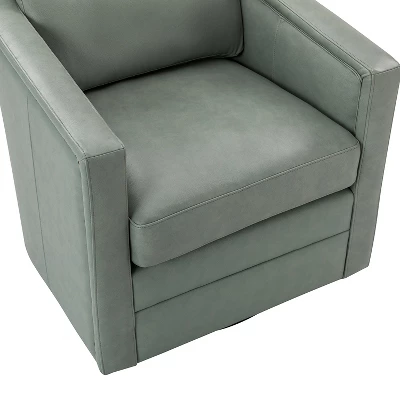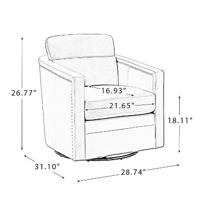 Even a small space can be turned into a relaxing retreat. The compact footprint of this leather swivel chair is full of comfort and style. It has a solid wood frame, a firm backrest, and an elastic seat cushion for extra legroom to support your sitting position, creating a classic silhouette. This swivel chair is filled with foam and has a spring seat structure for just the right amount of support, and the rebound swivel mechanism allows the chair to swivel easily without tipping or wobbling. Easily decorate a space in a reading nook, study, or office.Item Size: 28.74*31.1*26.77,Seat Size: 21.65*16.93*18.11.