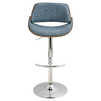 The wide welcoming seat of the LumiSource Fabrizzi Barstool beckons for one to sit and unwind for a while. A scooped, contoured seat and curved back add to its modern yet chic design. The chrome steel base adds beautiful contrast to the woven upholstery. This is an ideal selection for kitchen seating or a home bar.