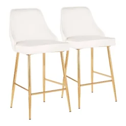 Graceful glam, that’s the Marcel Counter Stool from LumiSource. With its subtly curved silhouette, rich upholstery, and alluring metal legs, this counter stool will add striking style to any bar or counter area. The comfy padded seat if perfect for long conversations, or a quick morning breakfast. Available in various fabric and leg options. Sold in a set of two.