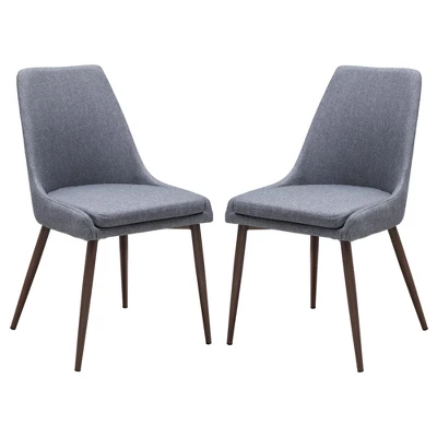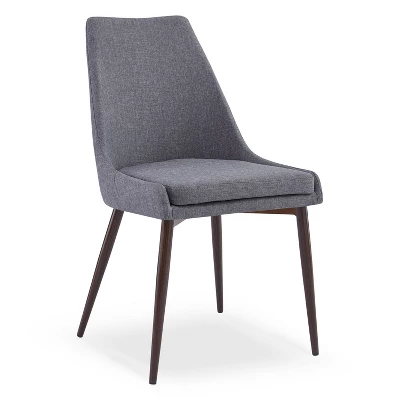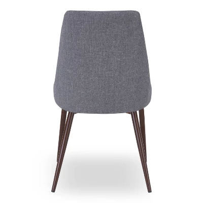 Mid-century minimalist style and modern-day comfort come together in the Ethen Dining Chair in Grey. A stylish contoured shape complements the decor in any dining room, while foam-and-fabric construction makes for a stylish and comfortable evening around the dinner table. Sturdy, wood-look metal legs offer stability and longevity along with a distinct touch of mid-century style.