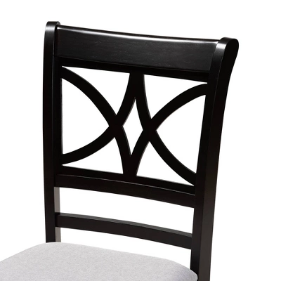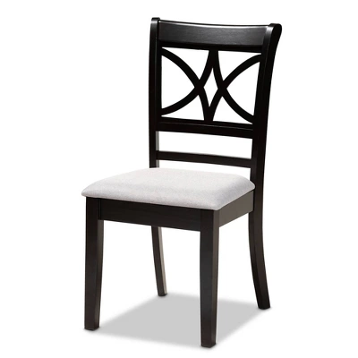 Modernize your dining room with the sophisticated design of the Clarke dining chair. Made in Malaysia, the Clarke dining chair is constructed from sturdy wood finished in a deep espresso brown. The Clarke requires assembly and is fitted with a foam-padded seat upholstered in a light fabric. The unique cut-out design on the back of the chair allows the Clarke to stand out while allowing light to flow through the dining room. A perfect fit for both formal dinner parties and casual meals, the Clarke dining chair elevates any dining experience. Dimensions: 37.4″ high x 18.5″ wide x 20.5″ deep; Seating dimensions: 18.5″ wide x 16.1″ deep x 18.5″ high (from Floor); Back: 19.7″ high; Legs: 16.9″ high;