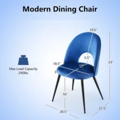 Add the dining chair set to your home for upgraded comfort!Each kitchen chair has a metal base and adjustable pads,both are helpful to maintain ideal sturdiness and stability. More,it is filled with sponge and covered with velvet,so each dining chair feels very skin-friendly. The 16″ high backrest is ergonomic,closely fitting body curves for fatigue relief. No matter home or office,the accent side chair set will bring you perfect enjoyment. More,the installation is also very simple. And please note that color difference may occur between different lights and monitors.