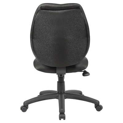 This beautiful chair is as unique as it gets with its sculptured seat made from molded foam. It has perfect contours to fit the shape of your body. It also includes a ratchet back which allows for back height adjustment. This mid-back style chair provides excellent lumbar support. Commercial grade fabric has been used for its upholstery. The large 27-inch nylon 5 star base provides immense stability while the pneumatic gas lift provides instant height adjustment of the seat.