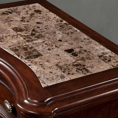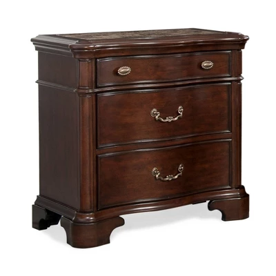 The Picket House Furnishings Tomlyn 3-Drawer Nightstand is the perfect addition to your bedroom! This bedside staple comes with three, spacious drawers; perfect for keeping all of your bedside belongings within reach. The top of the nightstand features a marble top, adding an extra element of style to this traditional design. The drawer fronts are curved and antique brass drawer pulls complement the dark, cherry finish beautifully.