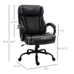 - OFFICE CHAIR INFORMATION: Overall Dimension: 28.5″W x 31.75″D x 43.25″-46.5″H, Seat Dimension: 24.25″W x 21.5″D x 20″-22.75″H