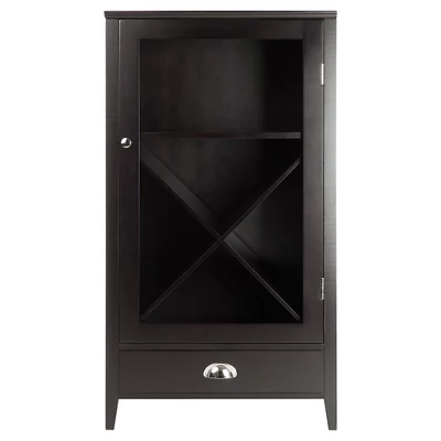 The X-Panel Modular Bordeaux Wine Cabinet – Winsome is part of the Orleans Modular Buffet. This buffet cabinet contains a drawer and cabinet in a rich walnut finish. Metal drawer pulls add a subtle shine. This buffet cabinet is great for storing wine bottles, stemware or serving accessories. Combine it with the modular buffet set, or use this wine storage solution as a stand-alone piece. Lay your wine bottles nicely with this X Shelf can store up to 24 bottles. Clear Glass Door with dark wood frame. Overall assembled size is 22.6″W x 15.75″D x 40″H.